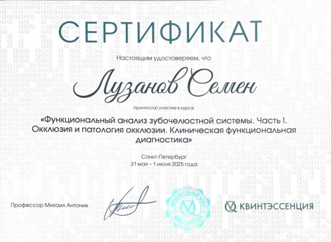 Принципиально честен в общении с пациентами: если метод не подходит, открыто обсуждает альтернативные варианты. Стремится к долгосрочному результату, чтобы выполненные работы служили годами без осложнений.